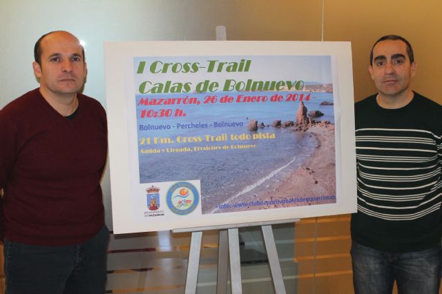 Mazarrón celebrará este domingo 26 a partir de las 10:30 horas, una nueva prueba deportiva organizada por la concejalía de Deportes y el Club Deportivo 'Bahía de Mazarrón'. El edil del área y el presidente del citado club, Andrés Valera y Pedro Lorite, han sido los encargados de presentar la carrera I Cross-Trail 'Calas de Bolnuevo' que recorrerá 21 kilómetros entre la explanada de las Erosiones de Bolnuevo, donde se situará la salida y llegada de la prueba, y la playa de Percheles.