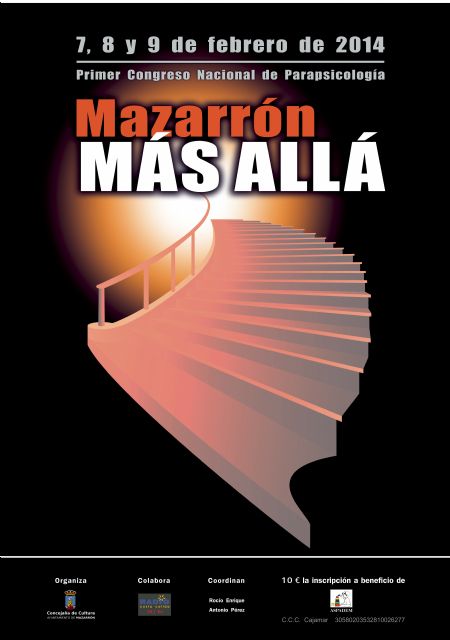 La organización del Congreso Nacional de Parapsicología 'Mazarrón más allá' ha tenido que cerrar las inscripciones del mismo al completarse las 170 plazas de las que disponía este encuentro, que tendrá lugar en el Centro Cultural de Mazarrón del 7 al 9 de febrero. La cita comenzará a las 22 horas del viernes 7 con la emisión en directo desde Mazarrón del programa de Radio Nacional de España (RNE) 'Espacio en Blanco', el cual dirige y presenta Miguel Blanco quien también participará como ponente con la conferencia titulada 'Tras las huellas de los Dioses'.