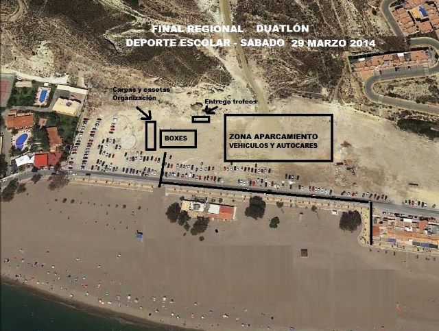 Mazarrón ha vuelto a ser el lugar elegido para disputar una final regional del programa de Deporte Escolar, que promueve la dirección general de la Actividad Física y el Deporte de la CARM en colaboración de los ayuntamientos de la Región. En esta ocasión, y tal y como ha explicado el concejal de Deportes, Andrés Valera, "Bolnuevo acogerá este sábado 29 la celebración de la final regional de Duatlón en las categorías Alevín, Infantil, Cadete y Juvenil".
