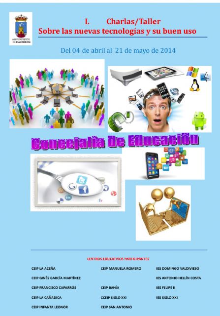 La concejalía de Educación ha organizado un taller titulado 'Nuevas Tecnologías y su buen uso' que recorrerá diferentes centros educativos de Mazarrón y que impartirá el trabajador social José Ruiz, creador de este proyecto. La presentación del taller corrió a cargo de la concejala de Educación, María Celeste Soria, y del propio trabajado social, quienes destacaron la importancia de que los jóvenes y adolescentes del municipio aprendan a utilizar las nuevas tecnologías de manera provechosa y positiva.