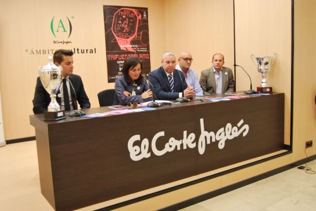 Un vídeo con los saludos de Javier Gómez Noya, Iván Raña y de otros reconocidos triatletas que participarán en el XXV Triatlón Nacional Villa de Fuente Álamo sirvió ayer como preludio de la presentación que los Ayuntamientos de Fuente Álamo y Mazarrón celebraron en la sala de Ámbito Cultural de 'El Corte Inglés'. En la presentación de la prueba, que se celebra este sábado 3 de mayo a partir de las 17 horas desde la playa del Rihuete, estuvieron presentes la Alcaldesa de Fuente Álamo, María Antonia Conesa; el alcalde de Mazarrón, Ginés Campillo; los concejales de Deportes de ambas localidades, Juan Fulgencio López y Andrés Valera; y el presidente del comité organizador del triatlón, Ginés Bermúdez.