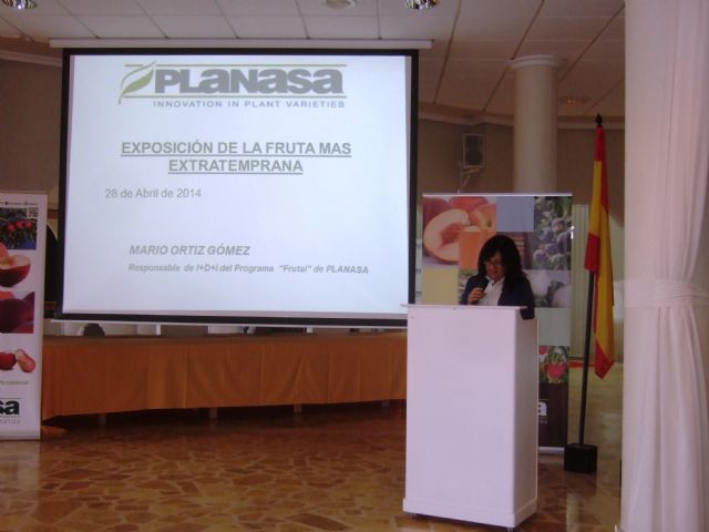 Durante la cita también intervinieron Mario Ortiz, obtentor de variedades de frutal de hueso, e Iván Leache, director comercial de 'PLANASA'. Estos también dieron a conocer una novedad muy interesante para nuestra zona como es una variedad de paragüayo de carne amarilla con fecha de recolección estimada para la primera semana de abril y una muestra de fruta de melocotón, nectarina y paraguayo procedentes de variedades de frutales extratempranos, algunos de ellos recolectados en Mazarrón.