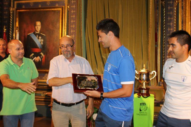 El alcalde y los concejales de Deporte, Cultura y Servicios reciben a los integrantes del Bala Azul FP, recientes subcampeones de España en el torneo celebrado en La Manga