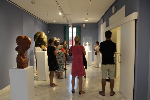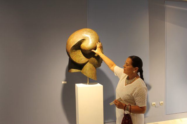 Lola Arcas anfitriona en la muestra de su propia obra. La artista lorquina tuvo este detalle con una decena de visitantes que tuvieron la suerte de obtener una versión explicada de "La atracción de la forma", la exposición de esculturas que Arcas muestra en las Casas Consistoriales de Mazarrón hasta el próximo 12 de septiembre. La actividad ha sido organizada por la concejalía de Cultura del Ayuntamiento de Mazarrón y en ella estuvo presente el edil Ginés Campillo.