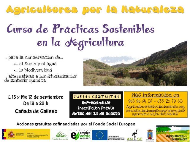 Estas actividades formativas, todas ellas gratuitas, forman parte del proyecto Agricultores por la Naturaleza enmarcado en el Programa Empleaverde de la Fundación Biodiversidad, cofinanciado por el Fondo Social Europeo. Este curso cuenta con el apoyo del Ayuntamiento de Mazarrón. Todas las actividades realizadas en este proyecto son acciones gratuitas cofinanciadas por el FSE, y están dirigidas principalmente a trabajadores de pequeñas y medianas empresas en activo, así como a autónomos del sector agrícola. Además, en el marco de este proyecto también se realizarán asesoramientos personalizados y gratuitos en materia de agroecología, con el fin de realizar prácticas más sostenibles, y de fomento de la biodiversidad a través de la instalación de setos de flora autóctona, en el que se incluye la cesión de material vegetal a los agricultores.