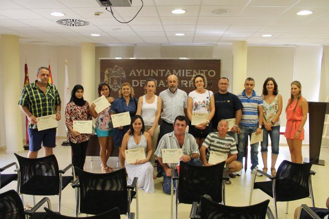 Hace unos días fueron entregados los diplomas de finalización de curso a una quincena de desempleados. Dicha entrega estuvo presidida por el alcalde de Mazarrón, Francisco García y la concejal de Formación, Empleo y Desarrollo Local, Matilde Blázquez.
