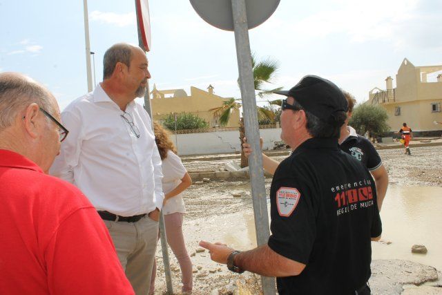 Junto a Francisco García han estado visitando los desperfectos el concejal de Servicios, Juan Miguel Muñoz Blaya y la concejal de Desarrollo Local, Matilde Blázquez. Horas antes lo hacían los concejales de Urbanismo y Seguridad Ciudadana, Ginés Campillo e Isidro Coy junto al concejal de Protección Civil, Miguel García, quien desde el primer momento coordina la actuación municipal de emergencias. Miguel García ha destacado el objetivo principal de esta rápida actuación que no ha sido otro que restablecer las necesidades básicas de los vecinos afectados por la tromba. En un primer momento se preparó a los equipos para posibles evacuaciones de personas, que finalmente no fueron necesarias. Los daños según ha confirmado Miguel García se han centrado en vehículos y en los muros perimetrales de las viviendas.