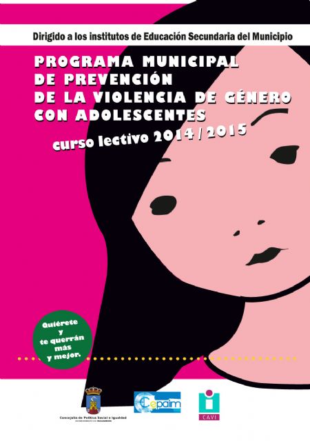 Con el slogan "Quiérete y te querrán más y mejor" comienza el próximo lunes la cuarta campaña de sensibilización contra la violencia de género en los centros de Educación Secundaria en el municipio. En total son 28 aulas a las que irá dirigido un programa que quiere potenciar la autoestima entre los adolescentes como recurso para que eviten situaciones de riesgo en un futuro.