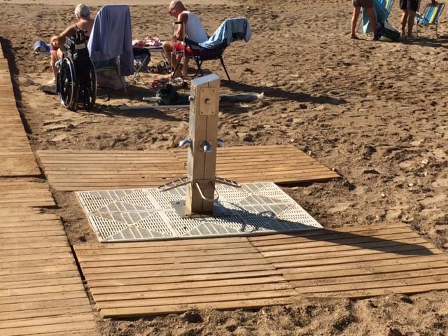 Los lavapiés comenzaron a instalarse de forma experimental a finales de septiembre. Se trata de unos cubiletes de polipropileno empleados en el sector ganadero para facilitar el drenaje. Su resultado según los técnicos ha sido óptimo y este tipo de lavapiés será instalado en toda la playa.