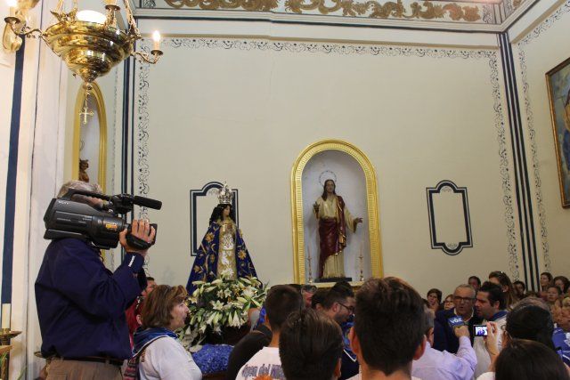 Seguidamente la imagen fue llevada en procesión hasta el Santuario de la Purísima, ofreciendo en su entrada al templo bellas imágenes entre aplausos, vivas e himnos. Una vez dentro y colocada en su lugar, a la derecha del altar, recibió los tradicionales cánticos de los miembros de la Asociación Virgen del Milagro y de los fieles que llenaban la iglesia.