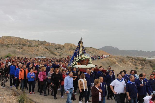 Tras la imagen, el Alcalde de Mazarrón, Francisco García y varios miembros de la corporación municipal, entre ellos los concejales de Festejos, Cultura y Política Social, Isidro Coy, Ginés Campillo y María Martínez respectivamente. Mientras tanto, los romeros iban animándose al son de las bandas de música que amenizaban el paso. Caras de ilusión, fervor y alegría se apreciaban entre las miles de personas que cumplían con la tradición de llevar la imagen de la Purísima hasta su Santuario en Bolnuevo.
