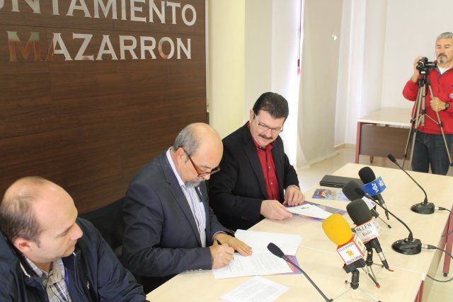 El alcalde de Mazarrón, Francisco García, y el director de la prueba, Francisco Guzmán, firman el convenio entre ambas entidades