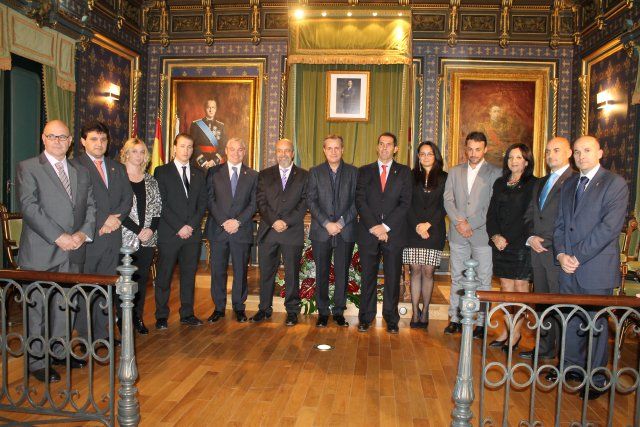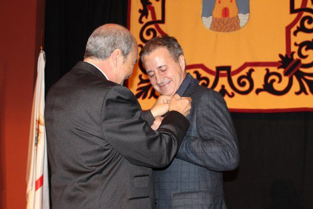 El pregonero recibió el escudo de oro del municipio de manos del alcalde de Mazarrón, Francisco García.