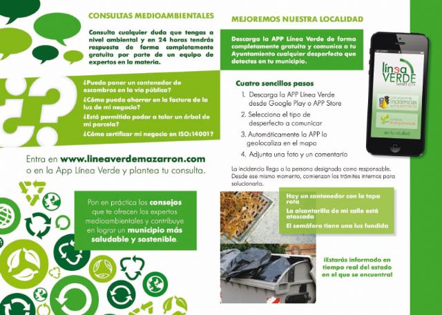 Para poder resolver cualquier consulta a nivel medioambiental, también se puede acceder a la web www.lineaverdemazarron.com. A través de este dominio, el ciudadano puede plantear cualquier consulta medioambiental y en un plazo máximo de 24 horas tendrá respuesta por un equipo de expertos en la materia.