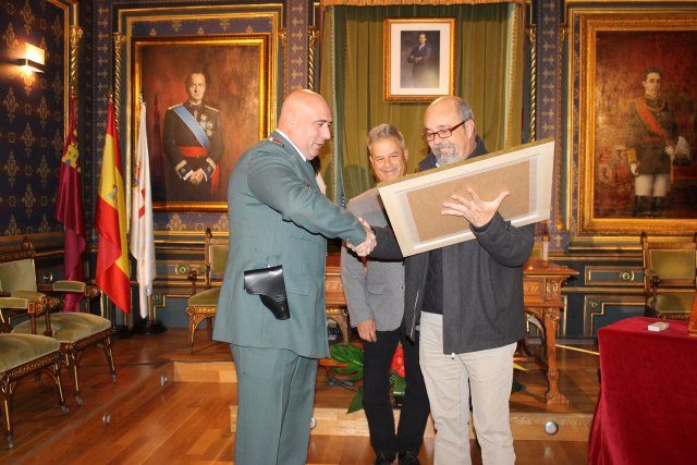 El guardia civil Carlos Valero Coso ha recibido este viernes el reconocimiento oficial del Ayuntamiento de Mazarrón. El juez de paz, Juan Sotomayor, le impuesto al agente la Cruz de Plata por los méritos que ha ido sumando en los últimos años en la prestación de su servicio en contra de la delincuencia ciudadana. El alcalde de Mazarrón, Francisco García, le ha hecho entrega del diploma que acredita este reconocimiento municipal.