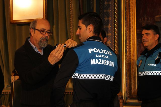 Alberto Zomeño es, desde el pasado viernes, nuevo sargento de la Policía Local de Mazarrón. El agente asumió su cargo en el Salón de Plenos ante la presencia del alcalde de Mazarrón, Francisco García y del también sargento del mismo cuerpo, Ramón Segura. Tras años de ejercicio, Zomeño accede al nuevo puesto que en su primer año será, tal y como marca la normativa, en prácticas.