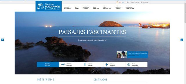Francisco García, alcalde de Mazarrón, ha presentado este martes la nueva web turística municipal registrada bajo el dominio www.visitamazarron.es. Este nuevo portal ha sido remodelado atendiendo a los cambios del portal regional, busca potenciar el turismo experiencia y destaca las numerosas actividades que se pueden realizar al aire libre en Mazarrón. Enriquecida con imágenes de gran belleza, realizadas en su mayoría por Juan S. Calventus, busca atraer al usuario, facilitándole además la navegación con elementos sencillos e intuitivos.
