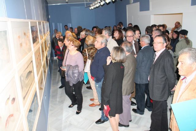 Pedro Cano no defraudó y, una vez más, maravilló a los vecinos de Mazarrón y visitantes que no quisieron perderse la inauguración mundial de su nueva exposición 'IXOYE-Peces', la cual puede verse en las Casas Consistoriales de Mazarrón hasta el próximo 4 de mayo y que está compuesta por un total de 24 acuarelas en las que el genial artista ha plasmado con su habitual maestría una serie de animales marinos como sardinas, jureles, gambas, cigalas, un pulpo, gayo pedro, e incluso una pescadilla que se muerde la cola, entre muchos otros.