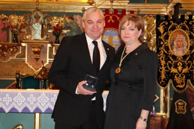 Durante el acto también se reconoció como 'Nazareno del Año' a Bartolomé Muñoz, un pescador de la familia de los 'Jaloque' que durante gran parte de su vida ha estado ligado a la cofradía del Santo Sepulcro que es la que ha organizado los actos de Semana Santa de este año. Precisamente, otro de los reconocimientos recayó en la presidenta de la cofradía, Magdalena Campillo, que recibió de manos del pregonero la insignia de oro de su agrupación por su labor al frente de la organización de estos actos y coordinación de las diferentes hermandades que la componen.