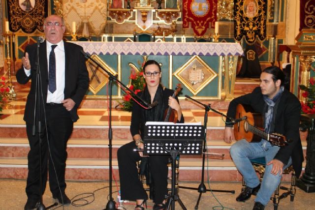 La noche estuvo amenizada por el cantaor flamenco Antonio Francisco García, más conocido como 'El niño de las Cuevas', quien cantó con gran maestría varias saetas y estuvo acompañado a la guitarra de su hijo Antonio y al violín de su hija María, la cual también interpretó con profundo sentimiento varios cantos religiosos de este tipo. Entre ellos, destacó el dedicado a la Mujer Verónica y a las portadoras de este trono, ya que en Mazarrón este 'paso' es llevado a hombros únicamente por mujeres. También fue una noche en la que el sacerdote de la parroquia de San Andrés Apostol y San Antonio de Padua, Julio Romero, bendijo un nuevo trono de la cofradía de San Juan para la Virgen de la Piedad que procesiona en la noche de Viernes Santo.