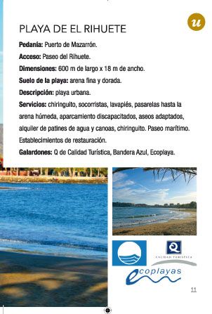 La guía distingue entre playas urbanas, semiurbanas, vírgenes y naturistas. Acompañada de mapas de situación se describen los accesos, las dimensiones, el tipo de suelo y descripción de la playa, así como los servicios que presta y los reconocimientos que ostenta.