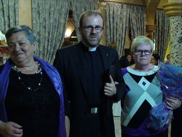 El párroco de la Iglesia de San José de Puerto de Mazarrón y la vecina homenajeada Luisa Menchón, protagonistas en la cena de apoyo a unas fiestas que se celebrarán del 8 al 17 de mayo