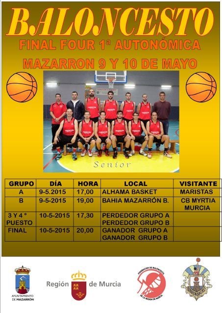 Nueva Final Four de baloncesto regional en apenas ocho días. Si la semana pasada fueron las cadetes femeninas, este próximo fin de semana serán los equipos sénior que compiten en la Primera Autonómica los que se citan en Mazarrón para dilucidar los cuatro primeros puestos.