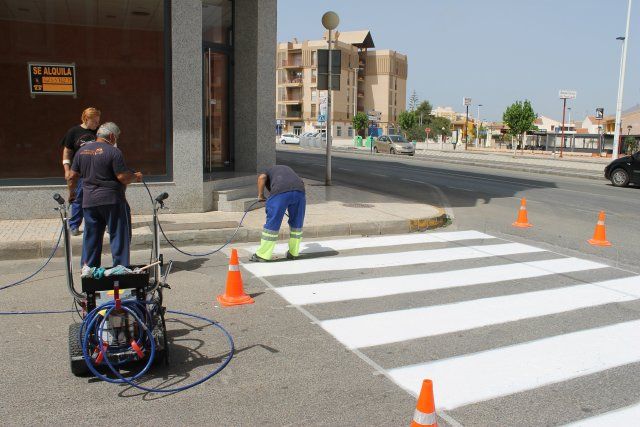 Los equipos dedicados a la pintura viaria ya han iniciado su labor en Puerto de Mazarrón y la próxima semana se desplazarán a Mazarrón y pedanías.