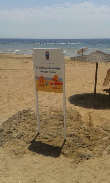 Desde la Concejalía de Servicios del Litoral del Ayuntamiento de Mazarrón se ha iniciado una campaña de concienciación ciudadana para mantener limpias las playas. En colaboración con los chiringuitos se está procediendo a la instalación en la arena de carteles informativos acompañados de un juego de maquetas que representa los desechos más comunes que se suelen hallar tras la limpieza de las playas: latas, colillas y pipas.