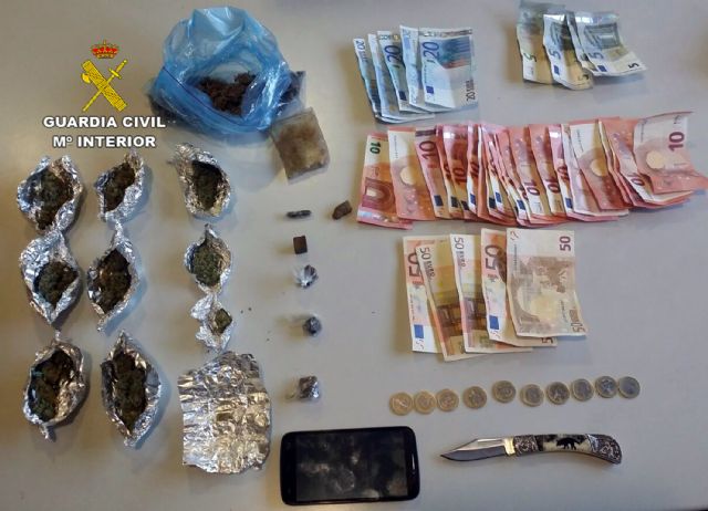 La Benemérita estableció numerosos dispositivos de vigilancia, uno de los cuales resultó positivo con la detención de una persona mientras realizaba la venta de sustancias estupefacientes en la vía pública. Al arrestado varón, de 44 años y vecino de Murcia le fueron incautados y puestos a disposición de la autoridad judicial 35 gramos de marihuana, 17 gramos de hachís, un teléfono móvil, un turismo y más de 500 euros en moneda fraccionaria.