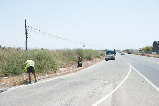 Empleados de Carreteras trabajan estos días en la limpieza y acondicionamiento de la N-332 en el tramo que une las dos poblaciones principales del municipio. El trayecto de Mazarrón a Puerto de Mazarrón es uno de los más transitados de la Región de Murcia, especialmente en estas fechas cuando se produce un notable incremento de desplazamientos. De ahí que a instancias del Ayuntamiento se haya procedido a llevar a cabo esta actuación.