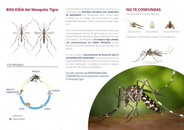 Es a partir de mayo cuando la campaña se hace más intensiva coincidiendo con el aumento de riego en los jardines de las viviendas de segunda residencia. Mediante el sistema de buzoneo se informa a los ciudadanos de los cuidados que deben extremar para evitar que prolifere esta especie invasora ya que, según informan los técnicos, el mosquito tigre necesita muy poco para criar sus larvas. Una balsa de riego o una piscina abandonada o zonas ajardinadas en las que se encuentra una pequeña acumulación de agua son lugares idóneos para que en ellos prolifere esta especie, a diferencia del mosquito común que necesita de espacios mucho más abiertos.
