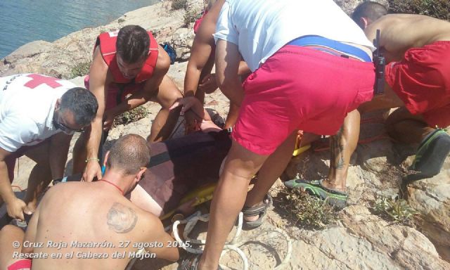 A primera hora de la tarde de este jueves efectivos del Plan de Vigilancia y Salvamento en Playas de Mazarrón rescataron en el Cabezo del Mojón a una mujer que sufrió una caída.