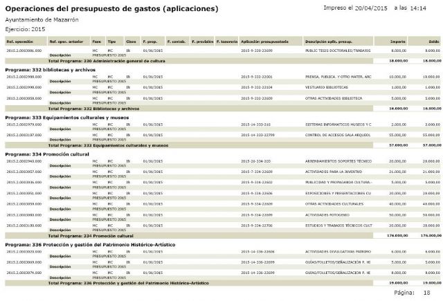 Según se recoge hoy en un periódico regional, Alicia Jiménez explicó ayer que "la anterior corporación municipal no nos ha dejado partida presupuestaria para que podamos celebrar el evento este año, por lo que dudo mucho de que finalmente podamos hacerlo". Nada más lejos de la realidad. Tal y como se contempla en los presupuestos de 2015 (archivo fotográfico que se adjunta a este comunicado), la anterior corporación destinó 50.000 euros para la celebración de 'Fotogenio', el mayor certamen fotográfico de España que ha vivido sus mejores años gracias al apoyo y excelente gestión económica que realizó Ginés Campillo en su etapa como alcalde de Mazarrón.