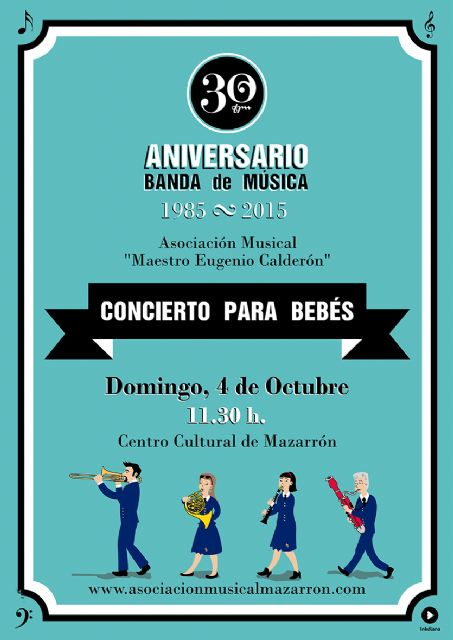 La banda de música de la Asociación Musical "Maestro Eugenio Calderón" ofrecerá un concierto especial, el próximo domingo 4 de octubre, a las 11:30 de la mañana, en el patio del Centro Cultural de Mazarrón. El concierto va dirigido a bebés acompañados de padres, madres, abuelos, abuelas…