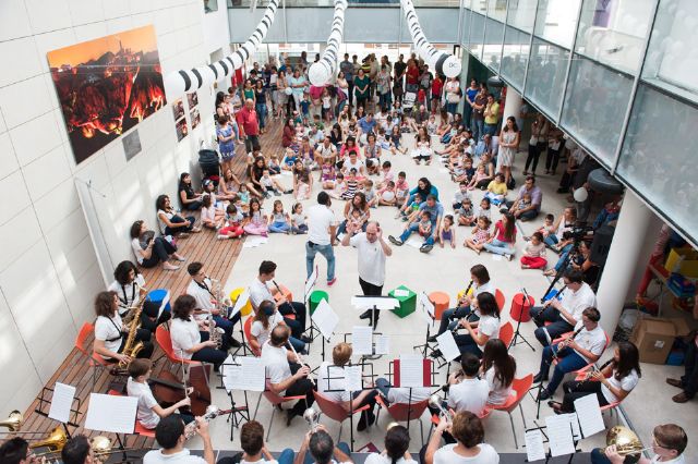 Este domingo la Asociación Musical Maestro Eugenio Calderón inauguró el curso 2015/2016 con un concierto para bebés, especialidad que integra la formación del centro y que el año pasado tuvo una gran acogida. Dirigidas a bebés a partir de 6 meses acompañados de sus padres, las clases trabajan el movimiento y la interacción con la música. Los pequeños juegan y se divierten con las notas musicales a la vez que aprenden a escuchar y a diferenciar los sonidos.