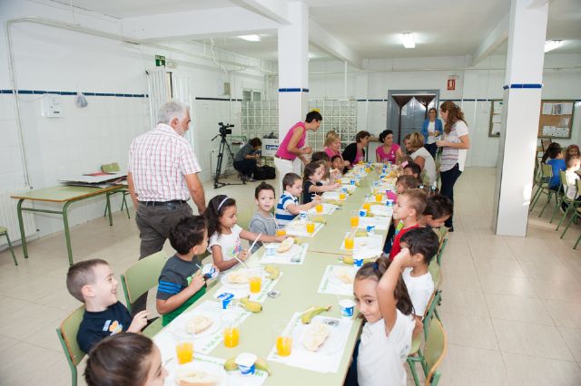 Los niños de cinco años del CEIP Manuela Romero de Puerto de Mazarrón han sido los primeros en participar de los desayunos saludables que organiza la Junta Local de la Asociación Española contra el Cáncer (AECC) enmarcados dentro de los actos programados con motivo de la I Semana por la Vida en la que colabora el Ayuntamiento de Mazarrón.