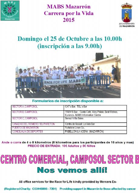 Los mazarroneros y quienes visitan el municipio durante el fin de semana tienen dos oportunidades para mostrar su solidaridad a favor de la lucha contra el cáncer. A la Marcha por la Vida de la AECC, se une la carrera que cada año organiza en Camposol la asociación benéfica MABS.