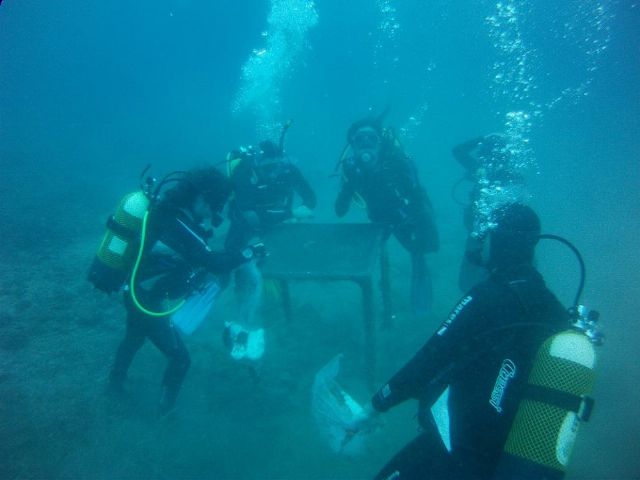 El centro de buceo Sureste-Bachisub, Cristalsub y la asociación Amigos de la Naturaleza han colaborado en esta iniciativa, junto a la Concejalía de Medio Ambiente del Ayuntamiento de Mazarrón. Isabel María López, concejal de Medio Ambiente ha estado apoyando a los voluntarios en esta iniciativa que lanza un mensaje muy claro e respeto al ecosistema. Junto a López también ha querido estar presente la concejal de Turismo, María Ángeles Román.
