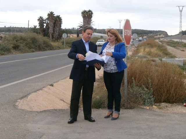 El director general de Carreteras, José Antonio Fernández, y la alcaldesa de Mazarrón, Alicia Jiménez, visitaron hoy la carretera RM-332, donde la Consejería de Fomento e Infraestructuras proyectará la construcción de una rotonda que dé acceso al complejo polideportivo de la localidad de Mazarrón.