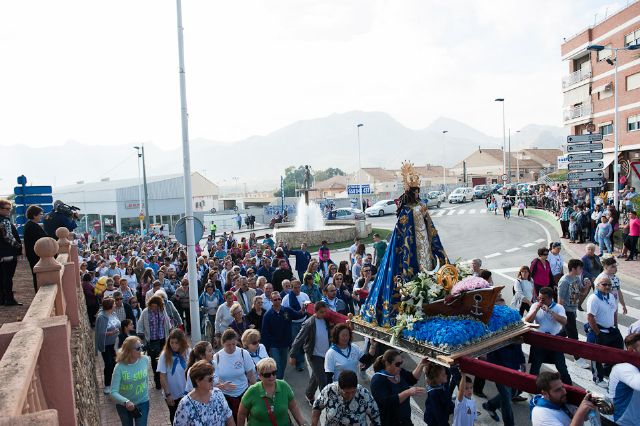 La Virgen del Milagro ya está en Mazarrón. A las 09:30 horas de este domingo partía de la ermita de Bolnuevo acompañada por cientos de fieles. Antes del inicio de la popular subida, se ha guardado un minuto de silencio en señal de duelo por las víctimas de los atentados de París. La alcaldesa de Mazarrón, Alicia Jiménez, ha acompañado a la imagen por el tradicional recorrido, para recibir más tarde al trono en el Jardín de la Purísima de Mazarrón junto al resto de autoridades. En procesión, la Virgen del Milagro ha sido llevada hasta la Iglesia de la Purísima, donde, como manda la tradición, permanecerá una semana hasta su vuelta en romería a su ermita de Bolnuevo.