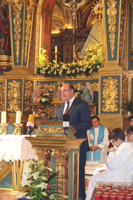 El presidente de la Comunidad, Pedro Antonio Sánchez, acompañó hoy a los ciudadanos de Mazarrón en el día de su patrona, y asistió a la misa en conmemoración del Milagro de la Purísima Concepción, 'Virgen del Milagro'.