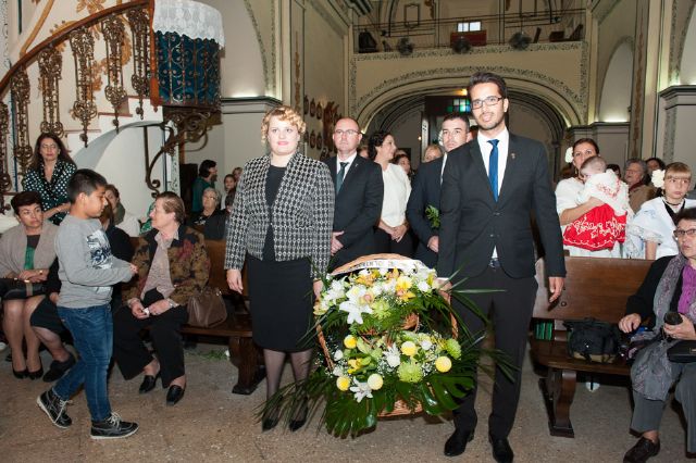 Alicia Jiménez, alcaldesa de Mazarrón, estuvo al frente del grupo de miembros de la corporación municipal que quisieron acompañar a los mazarroneros en este entrañable acto que tuvo su colofón en el altar ante la imagen de la Patrona.