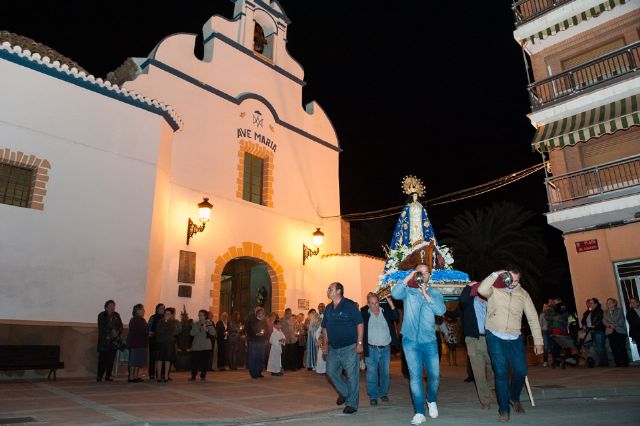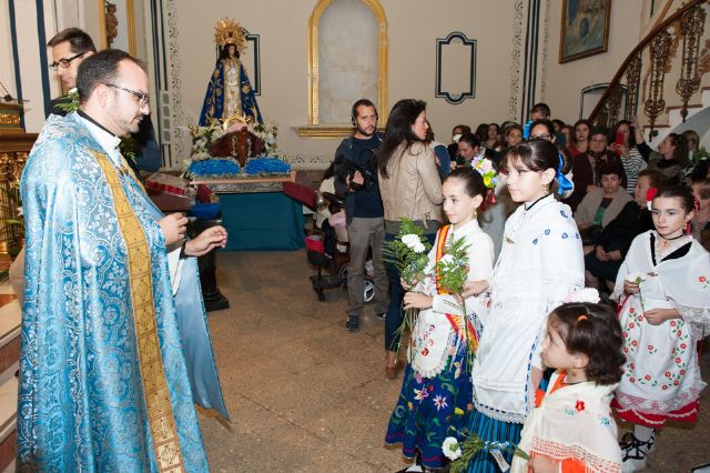 La Banda de Tambores y Cornetas encabezaba la procesión de niños y niñas vestidos de huertanos que fueron acompañados de miembros de los Cabildos de la Semana Santa de Mazarrón y Puerto, de la Asociación Virgen del Milagro y de colectivos y asociaciones como Cruz Roja y Aspadem, además de las religiosas franciscanas del asilo. Todos ellos depositaron al llegar al del Santuario de la Purísima bonitas cestas de flores.