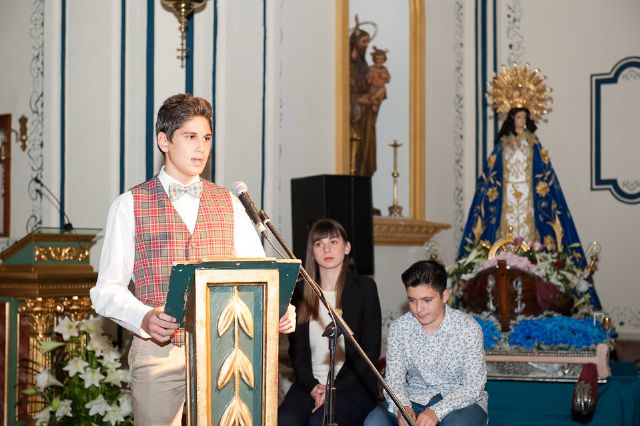 El Santuario de la Purísima albergó este viernes la tradicional lectura dramatizada de las Nueve Declaraciones del Milagro. Estudiantes del IES Domingo Valdivieso y la alcaldesa de Mazarrón, Alicia Jiménez, escenificaron los hechos que acontecieron a raíz del 17 de noviembre de 1585, día en el que quedó registrado el Milagro. Bajo la dirección de Isabel Moreno y María Dolores García, doce alumnos teatralizaron el juramento de un grupo de vecinos que testificó para registrar los excepcionales acontecimientos.