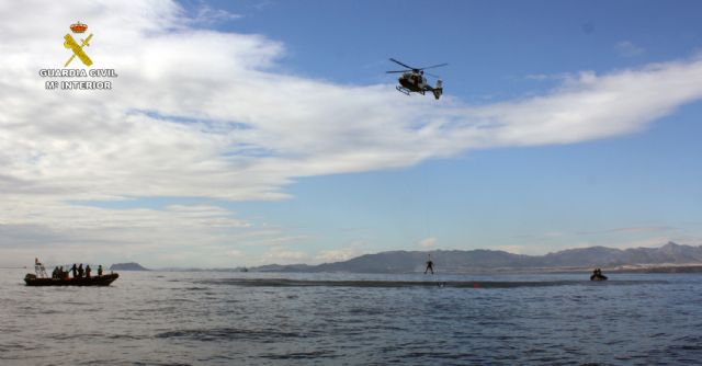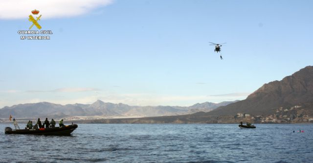 La Guardia Civil, en el marco del programa de formación de aspirantes a la obtención del título de 'Buceador Guardia Civil', ha desarrollado un ejercicio práctico consistente en un simulacro de rescate marítimo en aguas de Mazarrón. Para la práctica, en la que se han coordinado medios y efectivos de la Unidad de Actividades Subacuáticas (UAS), Servicio Aéreo, del Grupo de Especialistas en Actividades Subacuáticas (GEAS) de varias comandancias y del Servicio Marítimo Provincial de la Guardia Civil de Murcia; han participado 15 alumnos, entre los que se encuentran 10 guardias civiles, 2 policías costeros argelinos, 2 policías de la República de Ecuador y un policía federal de México.