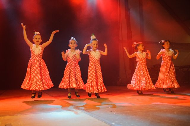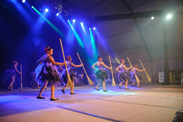 Las Escuelas de Baile Antonio Jara, De Rosa, Juan Antonio Iglesias y Terpsícore fueron las protagonistas en la programación de la noche del miércoles de las Fiestas Patronales de la Purísima. La carpa del Recinto Ferial Camino de Los Rincones acogió una nueva exhibición de su alumnado. Interpretaron coreografías de flamenco, baile español, moderno, charlestón, zarzuela, cabaret, lírico, latino y funky. Diversión y entretenimiento para las familias y resto de asistentes entre los que se hallaba la alcaldesa de Mazarrón, Alicia Jiménez y el concejal de Festejos, Patricio Sánchez.