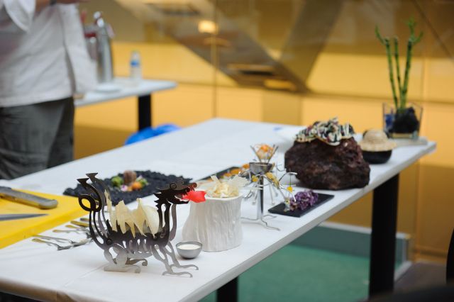 El jefe de cocina del Restaurante La Cabaña-Buenavista, Pablo González-Conejero, ofreció este sábado una clase maestra en el mercado gastronómico gAstrogAllo 2.0. El chef con una Estrella Michelín preparó once aperitivos típicos de su establecimiento y dos platos con productos locales de la bahía de Mazarrón. González-Conejero visitó así por segunda vez un mercado que inauguró él mismo el pasado 5 de diciembre. El reconocido cocinero murciano valoró la organización del evento, del que confirmó que le han llegado comentarios muy positivos de profesionales del sector.