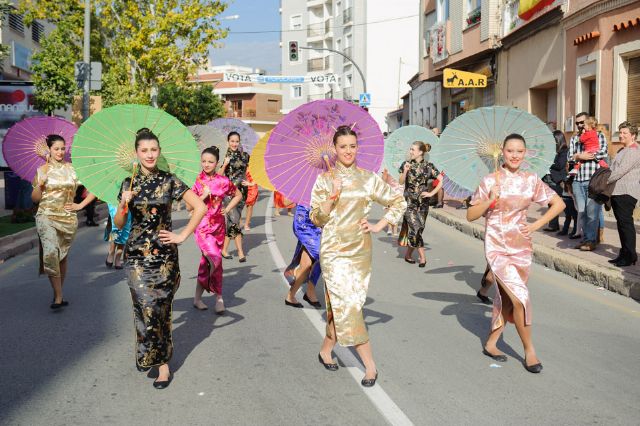La recreación de un pórtico de una estructura de la China Imperial mereció el primer premio del desfile de carrozas de las Fiestas Patronales de la Purísima 2015. La Escuela de Baile Antonio Jara se hizo así con el triunfo y la asignación de 1.500 euros. El segundo premio dotado con 1.000 euros fue para la Asociación Cultural La Majada por su imitación de la carroza del cuento de Disney La Cenicienta.