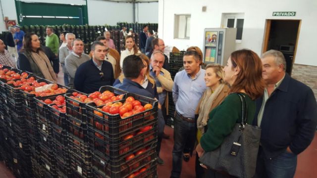 El secretario ejecutivo del Partido Popular de Agua, Agricultura y Medio Ambiente, Jesús Cano, la consejera de Agua, Agricultura y Medio Ambiente, Adela Martínez-Cachá, el diputado regional Juan Pagán y la alcaldesa de Mazarrón, Alicia Jiménez, han visitado esta tarde la empresa hortofrutícola Agrimur para mostrar el apoyo del PP al sector hortofrutícola regional y la necesidad de que exista un Pacto Nacional del Agua que traiga agua de donde sobra a donde falta.